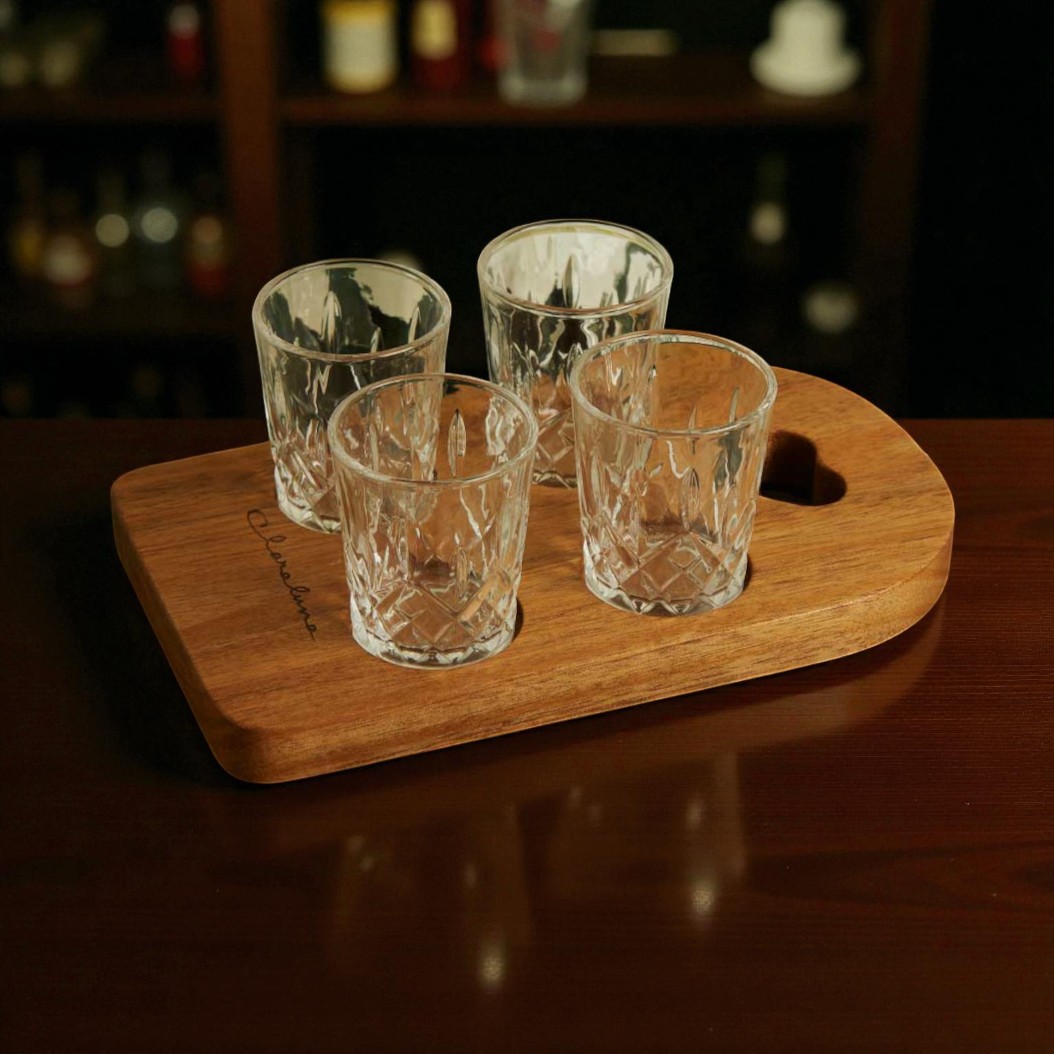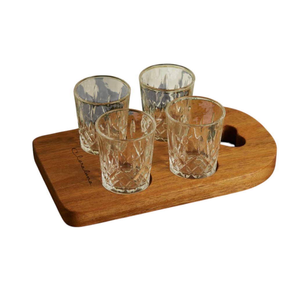Vassoio in legno di acacia con 4 bicchieri – Bomboniere Claraluna