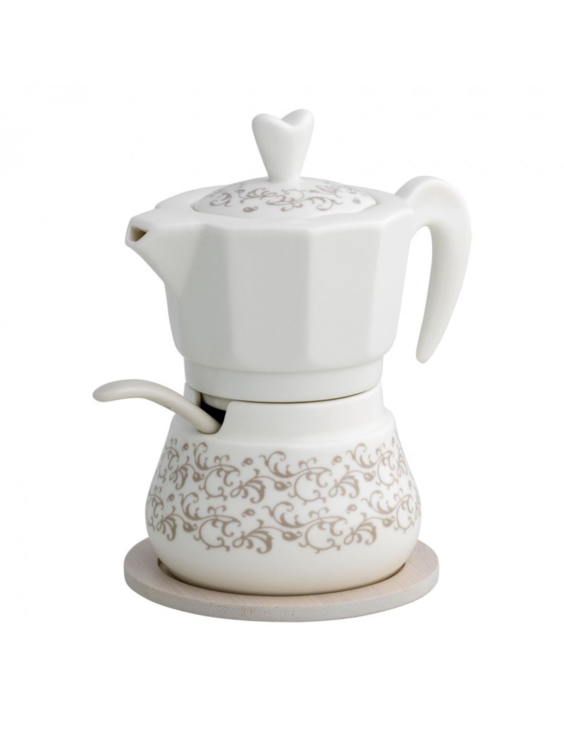 La zuccherina riccioli di fata, realizzata in porcellana bianca e bamboo naturale, a forma di piccola caffettiera, con avvenenti decori floreali e cucchiaino abbinato, è davvero un accessorio dalle molteplici sfaccettature: modernità, grazia e tradizione. Splendida da regalare, ideale come bomboniera, perfetta per te!