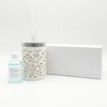 Il profumatore è realizzato in ceramica bianca con decorazioni di foglie traforate e parte superiore in argento. Un articolo elegante e perfetto per ogni ambiente. Kit essenza compreso. Dimensione: 6 x h 10 cm