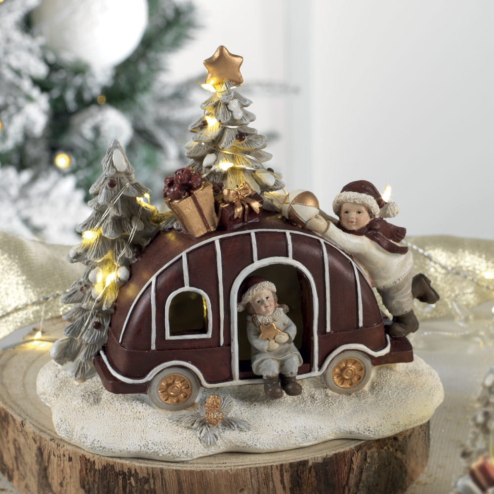 Set di 2 abeti con base ricoperta in iuta. L’articolo è composto dalla rappresentazione di elementi naturali che ricordano un paesaggio natalizio insieme a luci e led. Dimensione: h. 30 cm. Le batterie non sono incluse nella confezione.