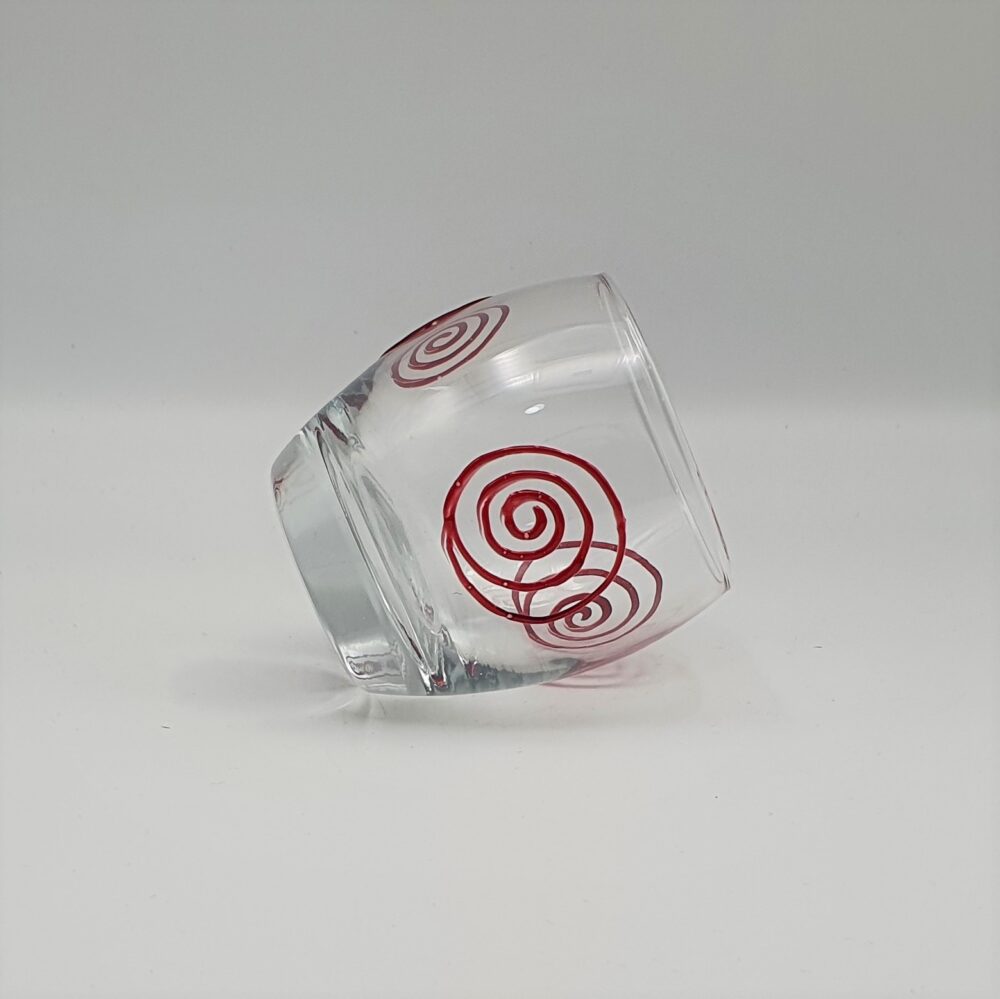 Bicchiere tavola 6 pz in vetro Giro Rosso . Decorato a mano artigianalmente in Italia. Resistente alla lavastoviglie.