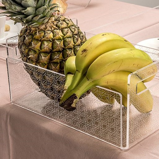 Facile da pulire e resistente, è un accessorio funzionale e versatile che si adatta perfettamente all’uso quotidiano. Scegli il portafrutta trasparente in plexiglass con decorazioni di foglie stilizzate per dare un tocco di stile naturale alla tua cucina e presentare la frutta in modo raffinato e moderno.
