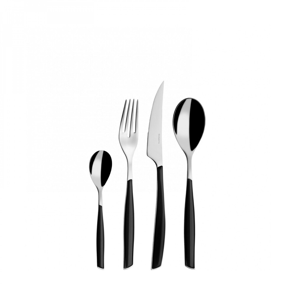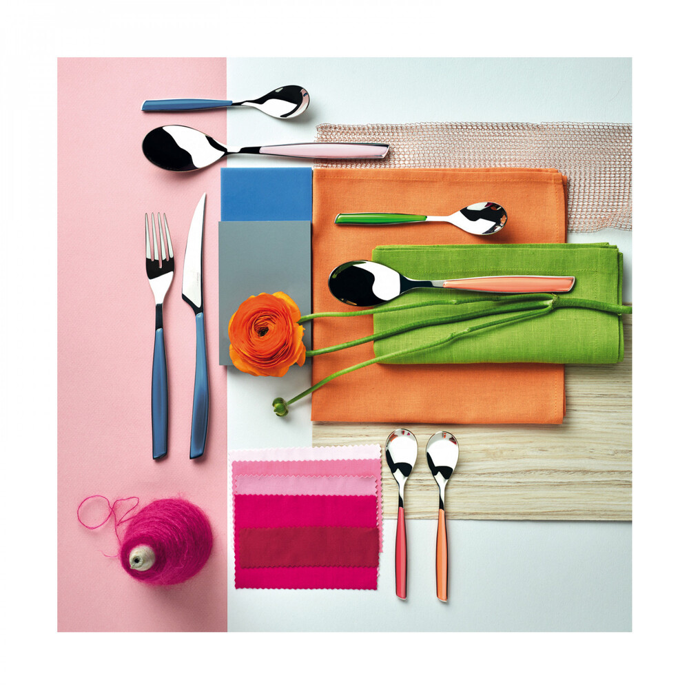 Posate in acciaio inox firmate Bugatti: simbolo di qualità e stile. Ogni pezzo è curato nel dettaglio e tutte le collezioni rispondono ai gusti e alle esigenze di tutti. L’ideale per decorare la tua tavola con cura e attenzione, mantenendo un’eleganza raffinata. Sono posate in acciaio inox 18/10 con manici colorati in ABS e sono lavabili in lavastoviglie. La confezione è inclusa. Il Set 24 pezzi è composto da:
