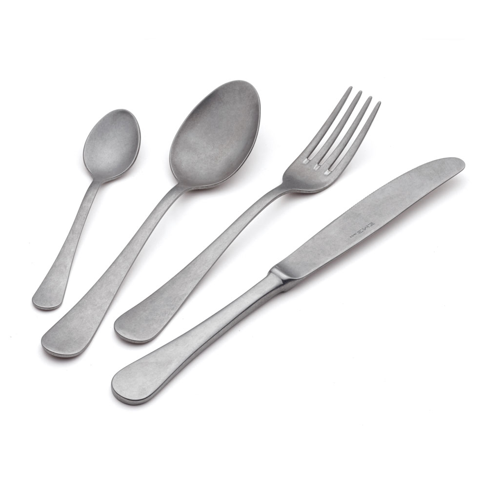 Le linee eleganti e i dettagli finemente lavorati richiamano lo stile classico, rendendo queste posate ideali per occasioni speciali o per aggiungere un tocco di fascino retrò alla tua tavola quotidiana. La finitura retrò è ottenuta attraverso una lavorazione meccanica di vibrofinitura che permette di ottenere l’effetto vintage. Il processo si basa sul continuo sfregamento delle posate con particolari pietre abrasive che conferiscono agli oggetti quel caratteristico aspetto superficiale consumato dall’uso.