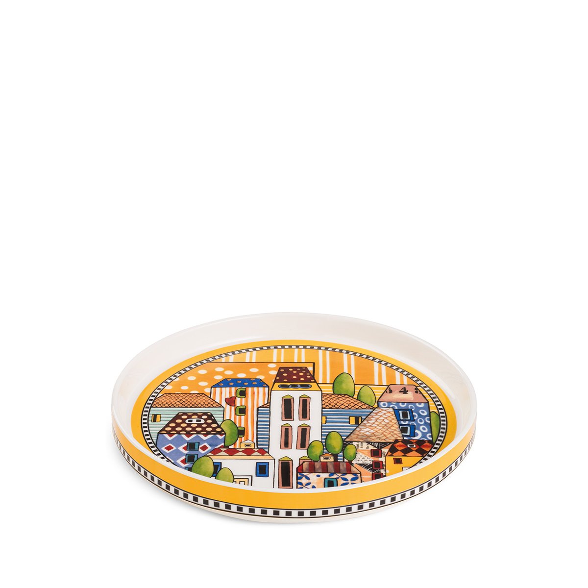 Arricchisci la tua tavola con il nostro elegante vassoio in porcellana. Questo accessorio è perfetto per portare un tocco di stile e colore in ogni occasione. Le decorazioni di casette moderne e dai colori vivaci rendono il vassoio un elemento unico e accattivante. Ideale per servire bevande, snack o per decorare con eleganza ogni ambiente della tua casa.